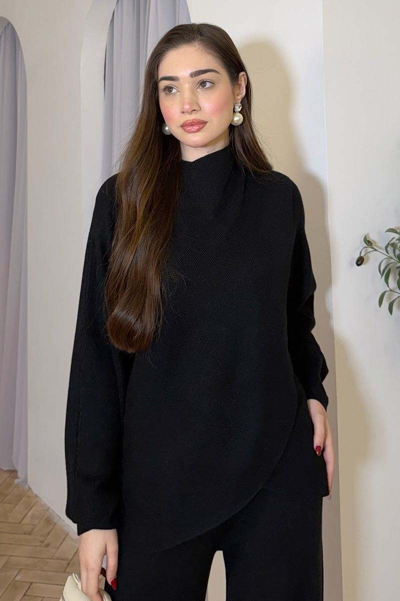 Crafted from premium fabric, this luxury coord set combines timeless design with elevated detail. The wrap-style top features a graceful layered crossover front, offering a flattering silhouette that flows effortlessly with movement. Paired with tailored wide-leg trousers, the ensemble delivers a poised yet relaxed statement — perfect for formal occasions or elevated everyday wear.