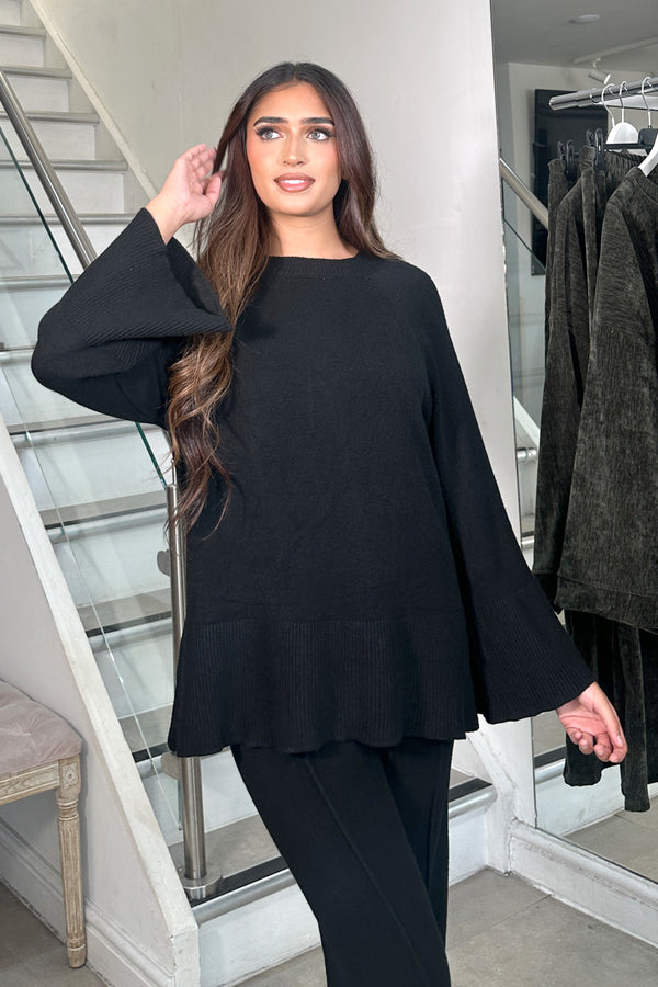 Effortless style meets cozy comfort in this beautifully crafted knitted coord set. The top features a flattering round neckline and slightly flared sleeves accented with delicate rib knit detailing for a subtle touch of texture and elegance. Paired with matching...