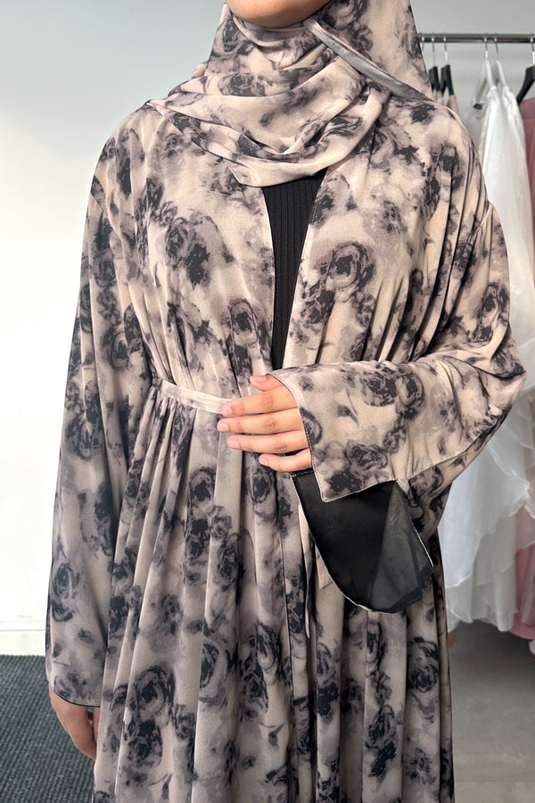 Make a statement with our printed chiffon abaya, designed in a straight-cut silhouette for a timeless look. Crafted from lightweight, double-lined chiffon, it ensures modest coverage without compromising on comfort. The abaya features subtly flared sleeves and comes with a...
