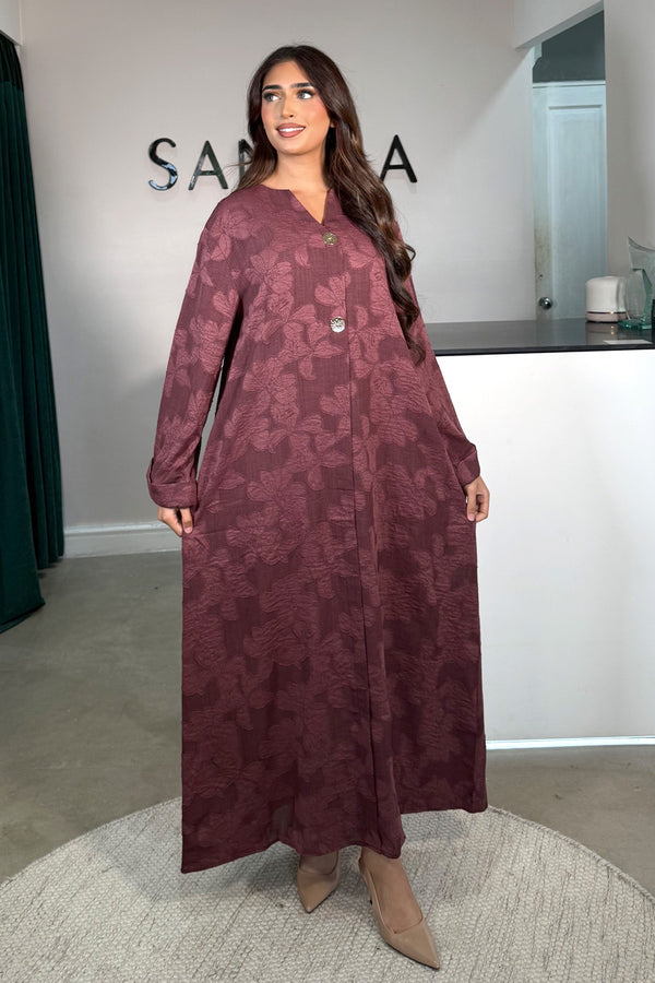 This effortlessly stylish dress combines a soft, artistic flair with timeless elegance. Crafted from lightweight fabric, it features a flattering V-neckline adorned with two gold buttons, adding a subtle touch of sophistication. With its normal sleeves and relaxed fit, this...
