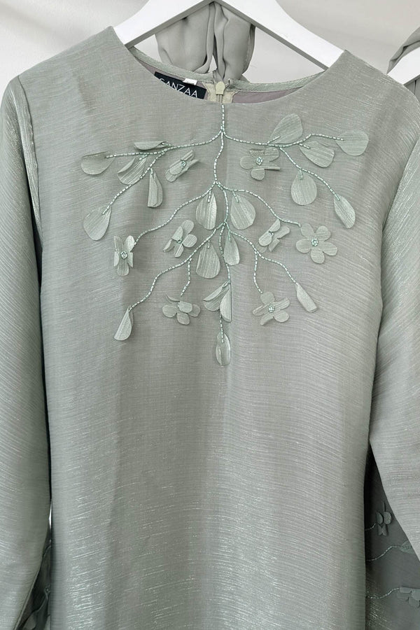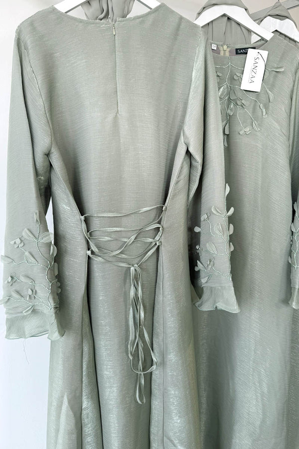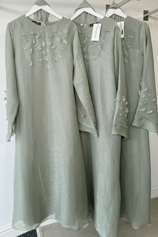 Dazzle in elegance with our Shimmer Abaya Dress, designed to make a statement with every step. Crafted from luxurious shimmering fabric, this abaya flows effortlessly, creating a regal and graceful silhouette. The gorgeous sleeves are adorned with intricate beading and...