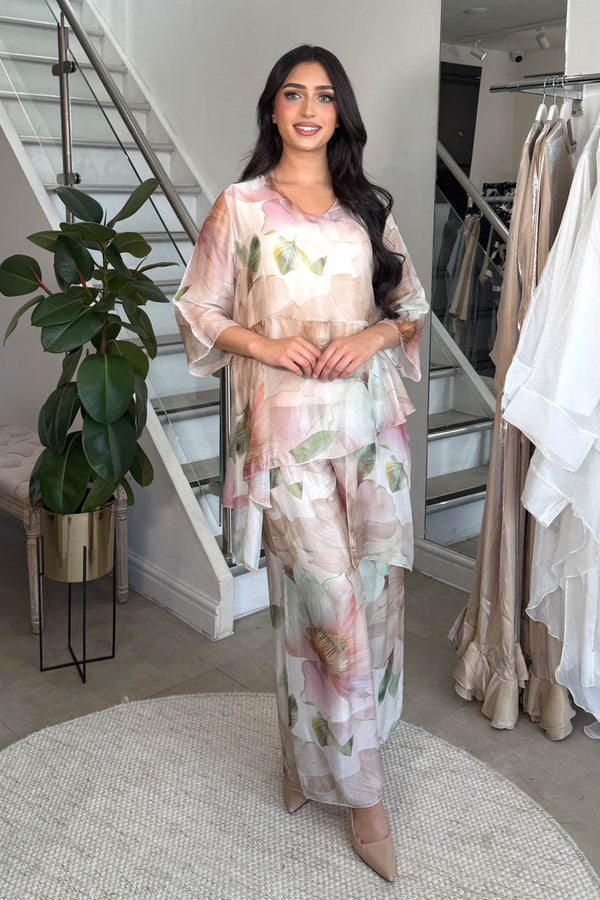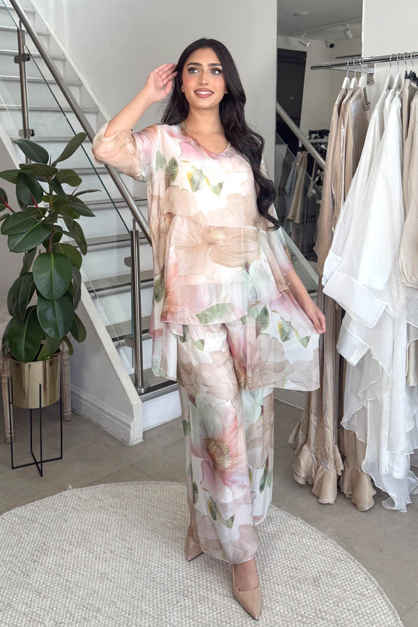 MIRA PRINTED COORD SET NUDE
