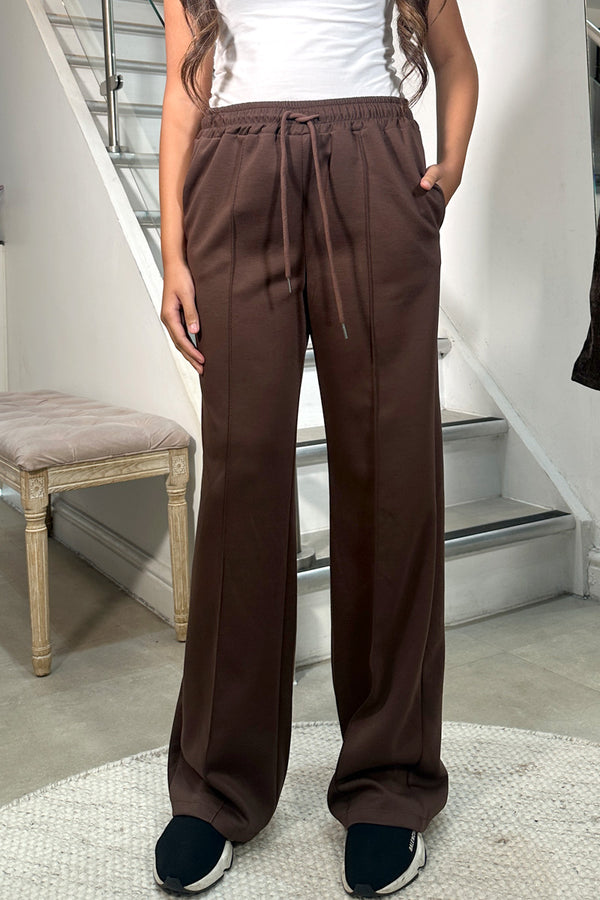 Experience laid-back comfort with a polished edge in these soft, cozy jogger-style trousers. Featuring a straight-leg silhouette and an elasticated waistband for a perfect fit, they offer effortless ease without sacrificing style. The sleek seam detail running down the front...