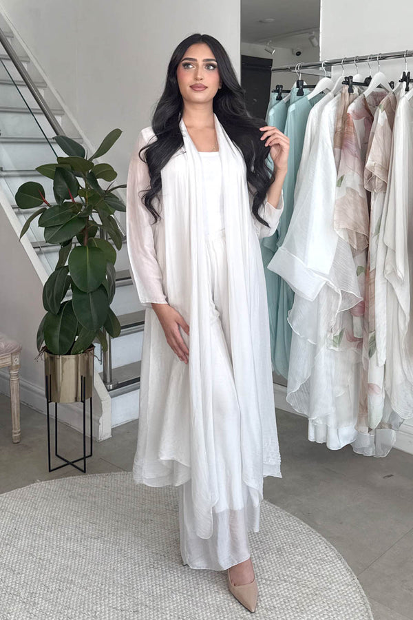 Crafted from the same premium fabric blend with 30% silk, this lightweight cover-up offers an elegant layer of softness and fluidity. Designed with a double front layer for added movement and subtle structure, it's the perfect finishing touch to any...